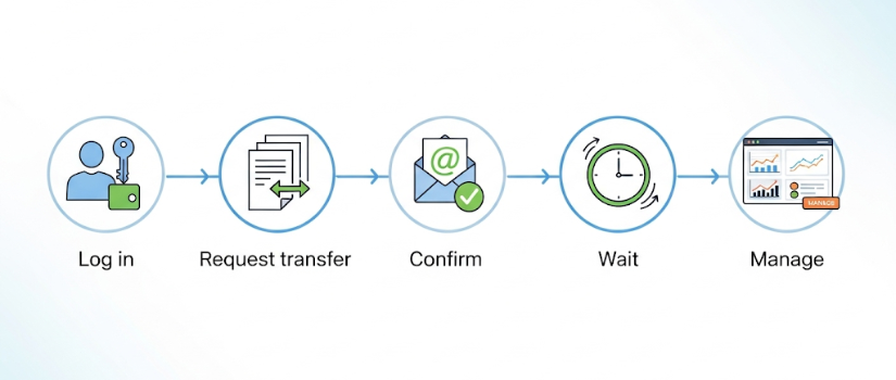 Check your email for a transfer confirmation. Approve it promptly. This ensures the transfer request is authorized and moves forward without delays.